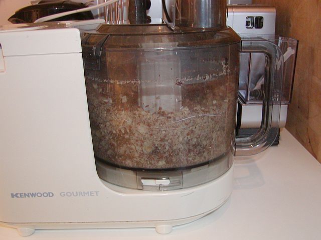 Häll hasselnötskärnorna i en matberedare med kniven monterad och kör tills de är riktigt finhackade.