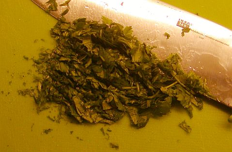 Skölj den färska koriandern och hacka den. Ställ den sedan åt sidan, den ska inte i förrän på slutet.