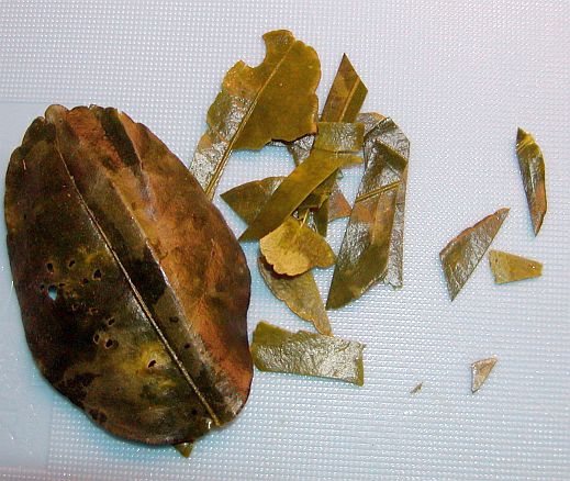 Medan kycklingbenen kokar så förbereder du resten. Skölj limebladen och strimla dem på längden.