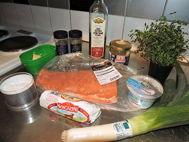 Du som har läst min blogg förut kommer att känna igen ingredienserna till den sås som jag brer över laxen. Där har jag nämligen inspirerats av förrättsfavoriten smördegstarteletter med chèvreost.