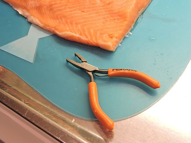 Känn efter så att det inte råkat bli kvar några ben – dra i så fall bort dem, gärna med en laxtång om du har en sån.