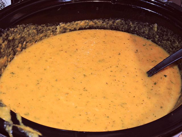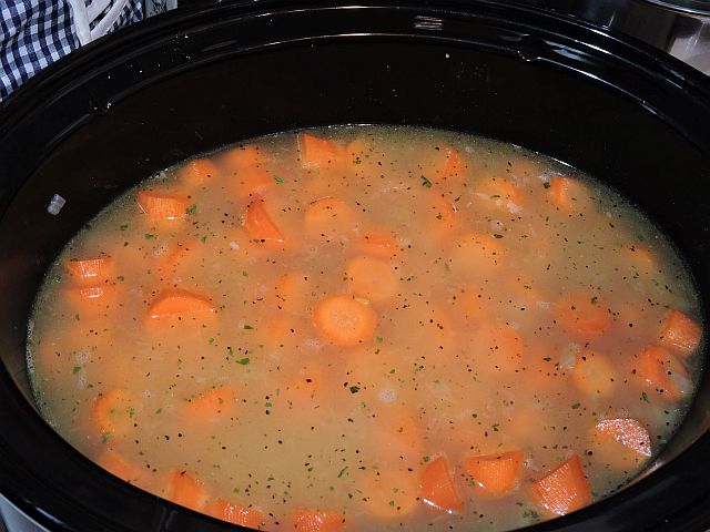 Låt sjuda på Låg i 5-6 timmar om du använder en slow cooker. I en vanlig kastrull, låt koka upp och sedan sjuda under lock i cirka 30 minuter tills morötterna är mjuka.