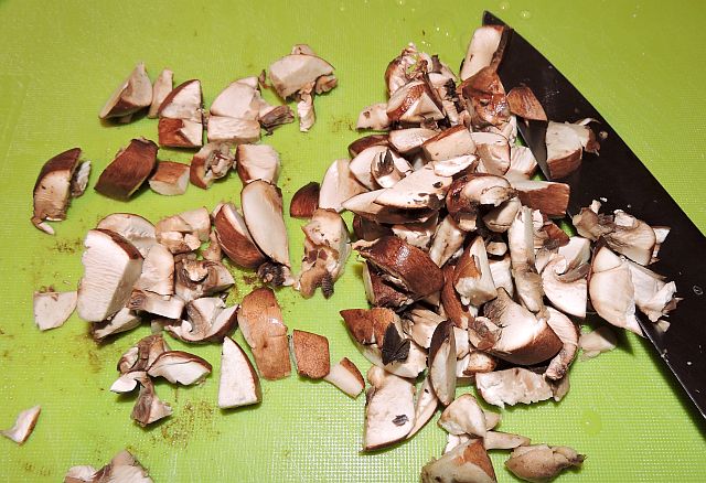Gillar du inte svamp (stackars dig!) så kan du utesluta den. Samma sak med oliverna, men då får du smaka upp med en aning mer salt. Det smakar inte heller särskilt mycket oliver, bara… gott.