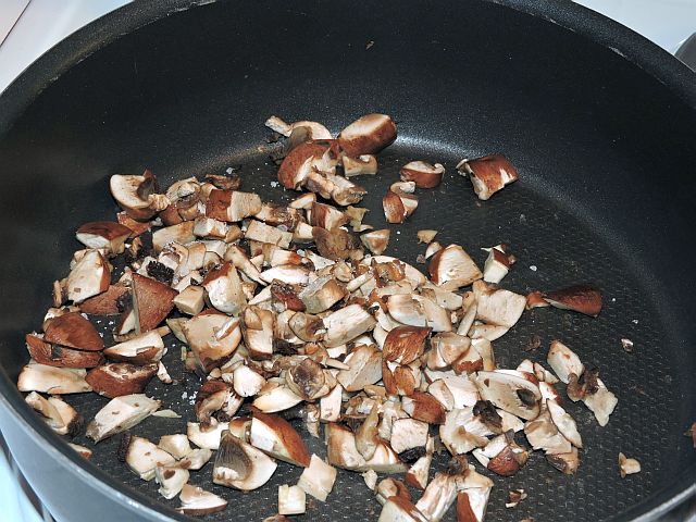 Hetta upp en stekpanna och torrstek svampen på hög värme med en liten nypa salt tills den släppt ifrån sig vätska som sedan kokat in igen.