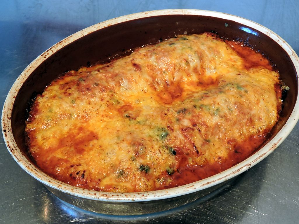 Låt den sedan gratinera i ytterligare 5-10 minuter tills osten har smält och är gyllene. Låt gärna enchiladasarna vila i 10-15 minuter (om du kan hålla dig). Servera sedan med en fräsch grönsallad.