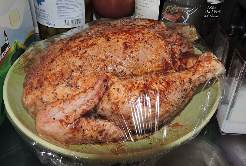 När kycklingen är väl insmord och masserad med kryddor så lägg den i en skål och täck med plastfolie. Ställ i kylskåp att vila i minst 1 timme.