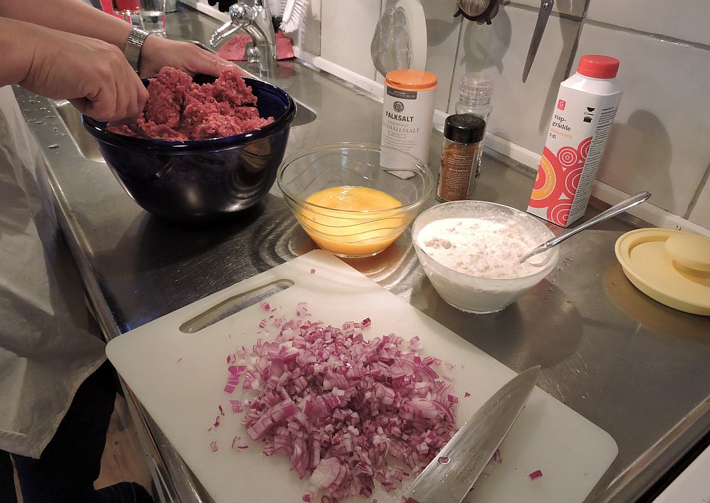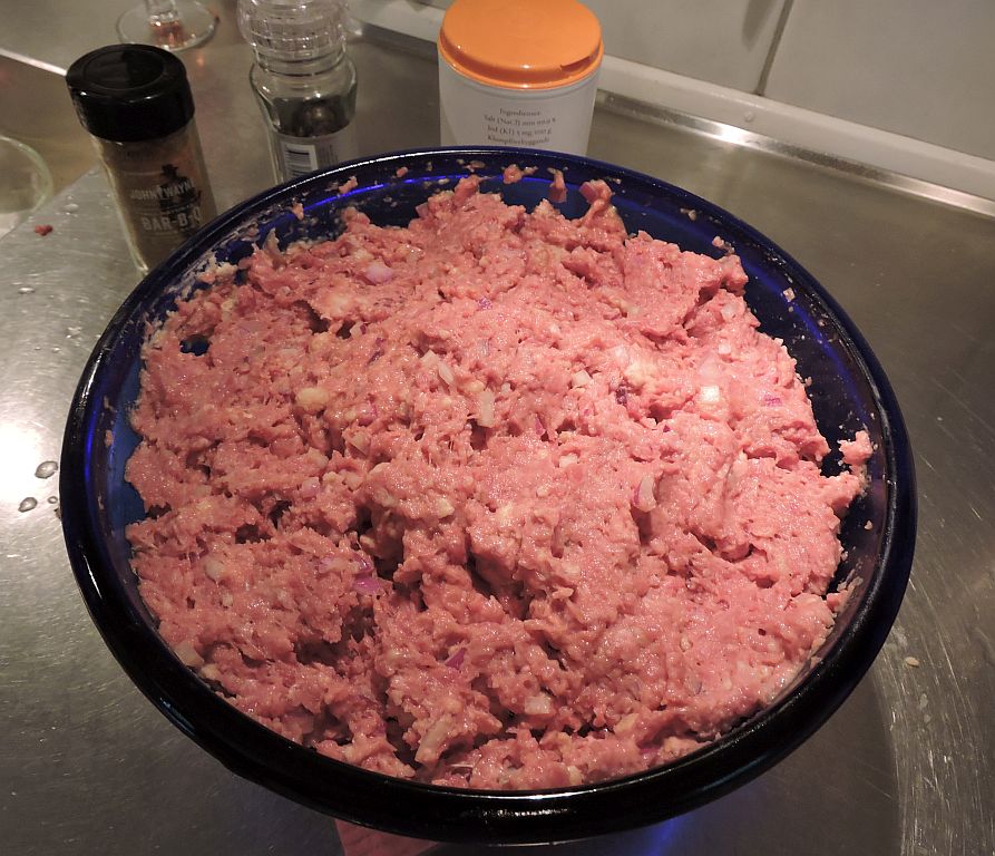 Oavsett hur det går till så är det viktigt att du blandar färsen väl. Har du tid att låta blandningen vila ett tag efter att du blandat den så skadar det inte men det är inte nödvändigt.