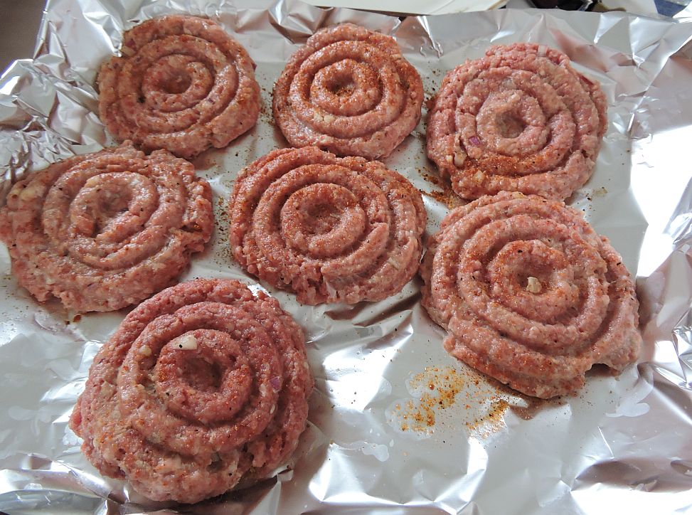 Forma den färdigblandade och utvilade färsen till 16 stycken stora burgare. Krydda med barbecuekrydda efter smak.