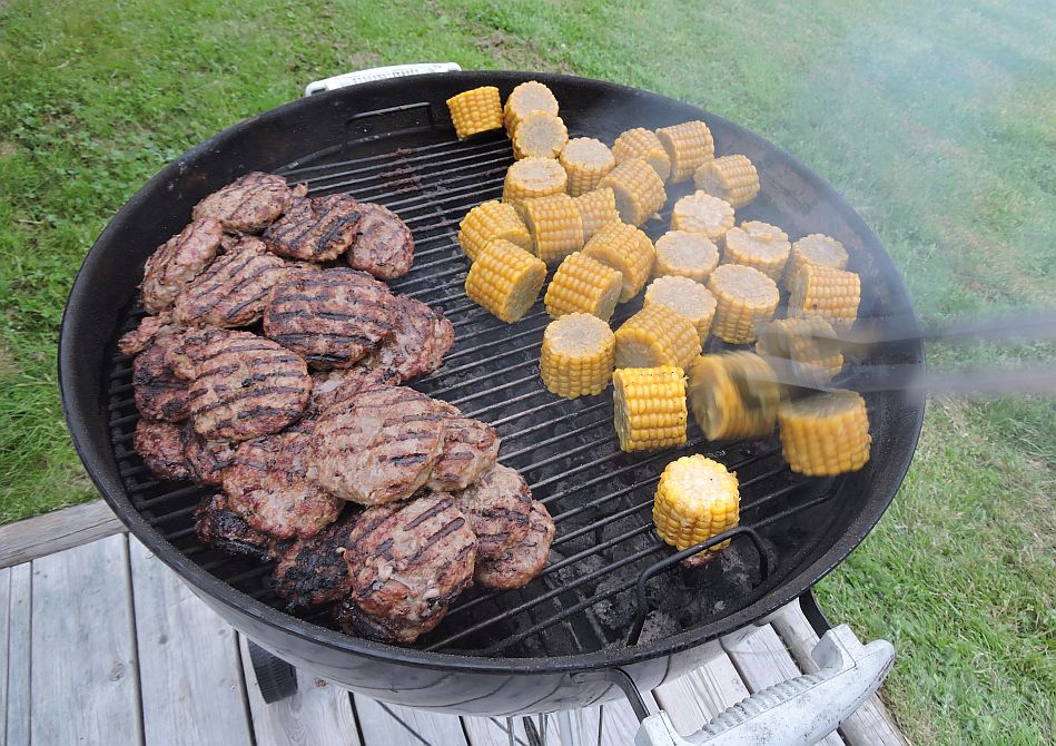 Servera med hamburgerbröd och dina favorittillbehör. Den här gången valde vi grillad majs, baconaioli, cole slaw, tomat- och rödlökschutney och en skiva cheddarost. Det blev fantastiskt gott! Du som vill ha lite mera sting kan också gärna testa min hemlagade barbecuesås.