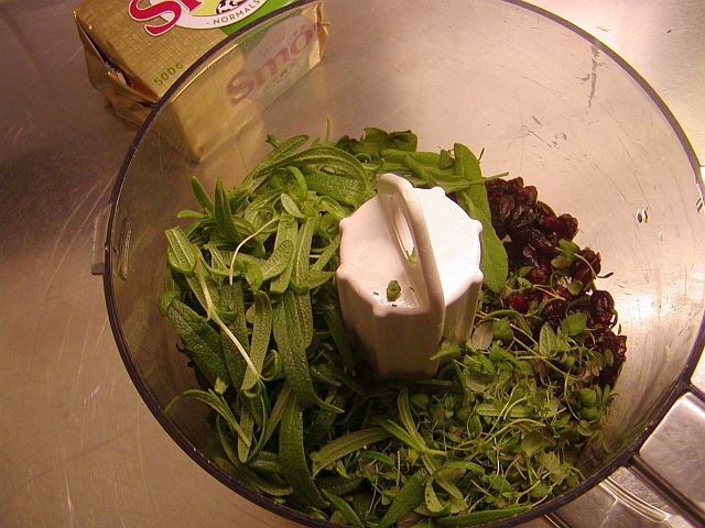 Gör som sagt gärna kryddsmöret dagen eller kvällen innan som du ska laga till kalkonen. Dels har du då en sak mindre att göra på själva tillagningsdagen, dels så hinner smöret dra till sig alla härliga smaker från kryddörterna.
