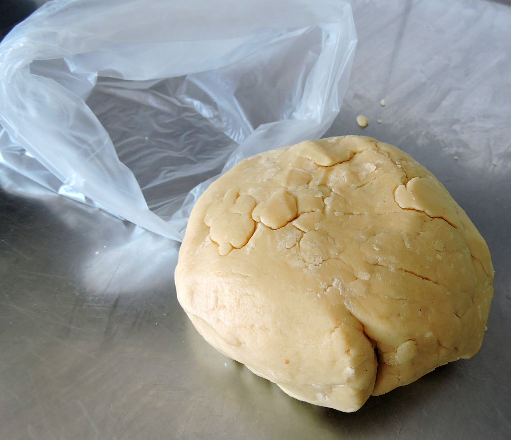 Ta upp degen ut matberedaren och knåda ihop den på diskbänken.
