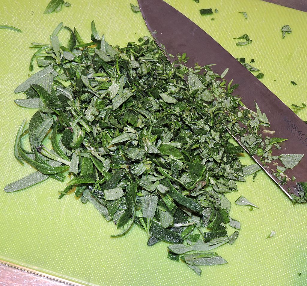 Är du inte förtjust i rosmarin kan du ta färsk timjan eller salvia istället, men då behöver du en hel kruka.