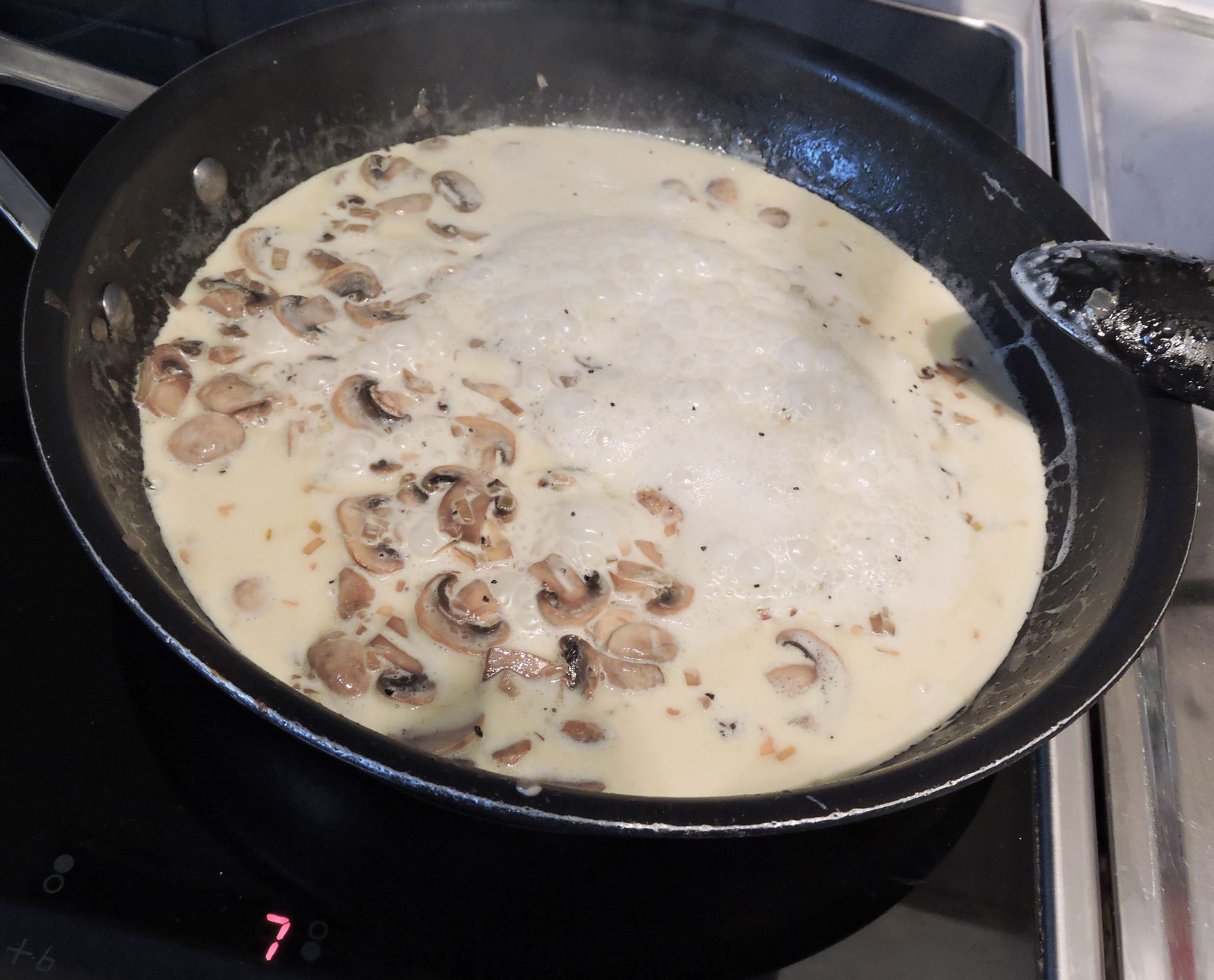 Tillsätt sedan grädden och låt koka ihop till en krämig sås.