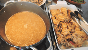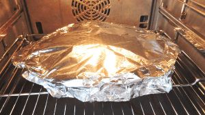 Sätt ugnen på 90°C för varmluft (100°C för vanlig ugn). Ugnen är bara till för att hålla kycklingen varm medan du lagar såsen.
