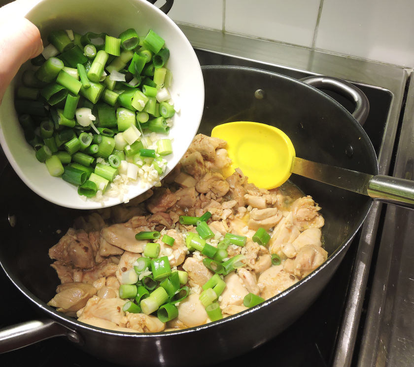 Skölj kycklingfilén i kallt vatten och klappa den torr med hushållspapper. Skär filéerna i bitar. Tvätta noga dina händer och diska alla redskap som har kommit i kontakt med den råa kycklingen.