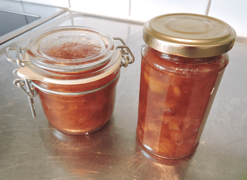 Resten av burkarna kan du förvara i skafferi tills du har öppnat dem. Öppnad burk förvarar du sedan i kylskåpet. Marmeladen behöver något dygn för att sätta sig och stelna ordentligt. Efter det är den redo att ätas, till exempel på rostat bröd – mums!