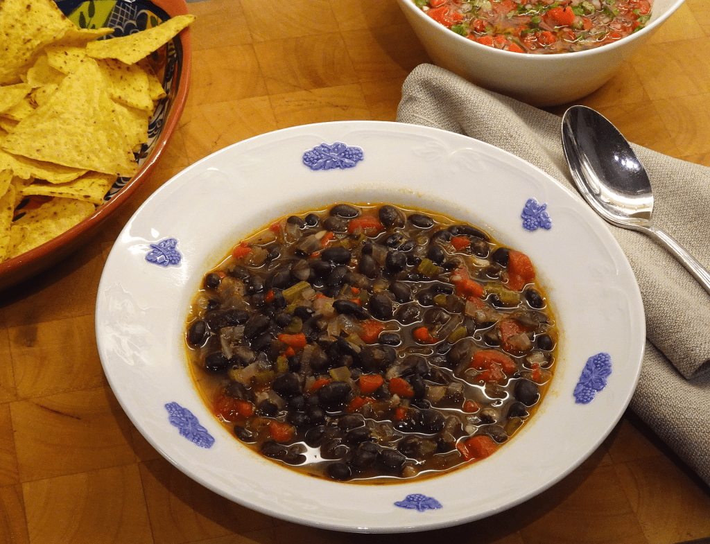 Jag älskar att laga (och äta!) den här soppan, särskilt när det är lite kyligt ute. Det är lätt att tro att en soppa på svarta bönor kanske är lite smaklös, men så är definitivt inte fallet med det här receptet. Den färska salsan ger extra sting till soppan, som i sig innehåller massor av goda smaker.