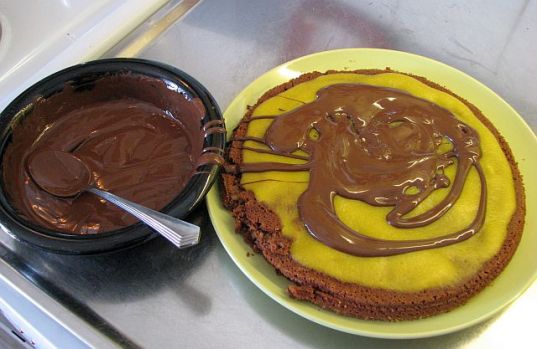 Föregående bild Nästa bild Fransk chokladtårta glasyr 4 Glasera tårtan utan att gegga till persikogelén Glasera tårtan utan att gegga till persikogelén