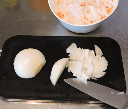 Skala löken och hacka den grovt