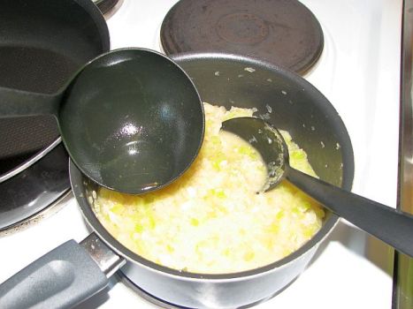 Föregående bild Nästa bild Fyll på med mer buljong en slev i taget vartefter den kokar in. Fyll på med mer buljong en slev i taget vartefter den kokar in. Fyll på med mer buljong en slev i taget vartefter den kokar in.